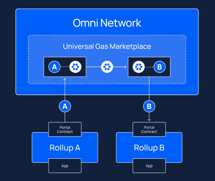 2. 유니버설 가스 마켓플레이스: 롤업 전체에 걸쳐 가스 결제 프로세스를 간소화하는 시스템을 구축했어요. 사용자는 모든 롤업에서 OMNI 토큰을 가스비 결제 수단으로 선택할 수 있습니다.
